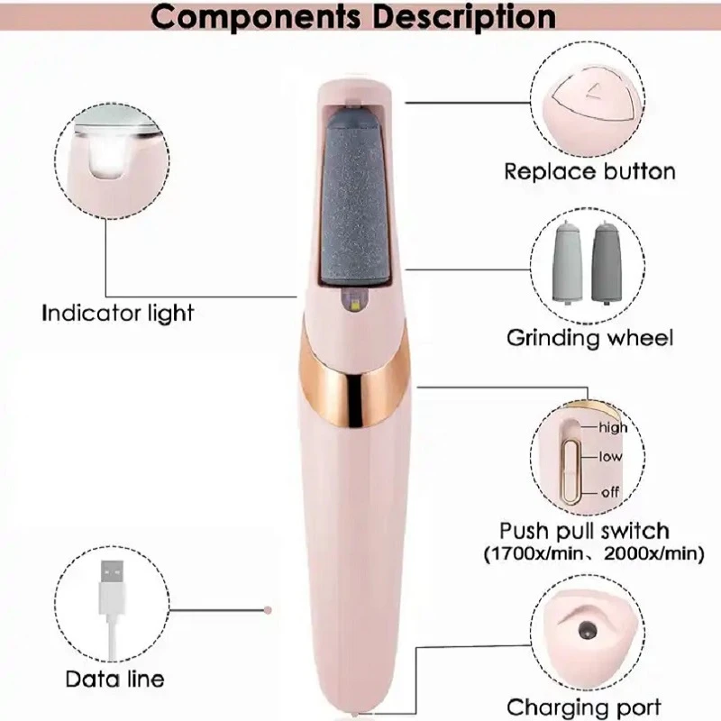 سوهان و سنگ پا شارژی با طراحی دسترسی آسان و دو سر غلتکی، مناسب صاف کردن پینهها و برق انداختن پوست پا در منزل است. دارای دو سرعت، چراغ داخلی و باتری لیتیوم-یون قابل شارژ میباشد.