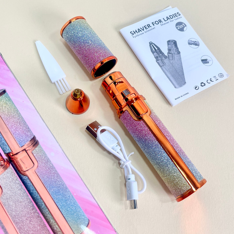 موزن و شیور دوکاره بانوان مدل CF001 – قابل شارژ USB با طراحی براق و فانتزی