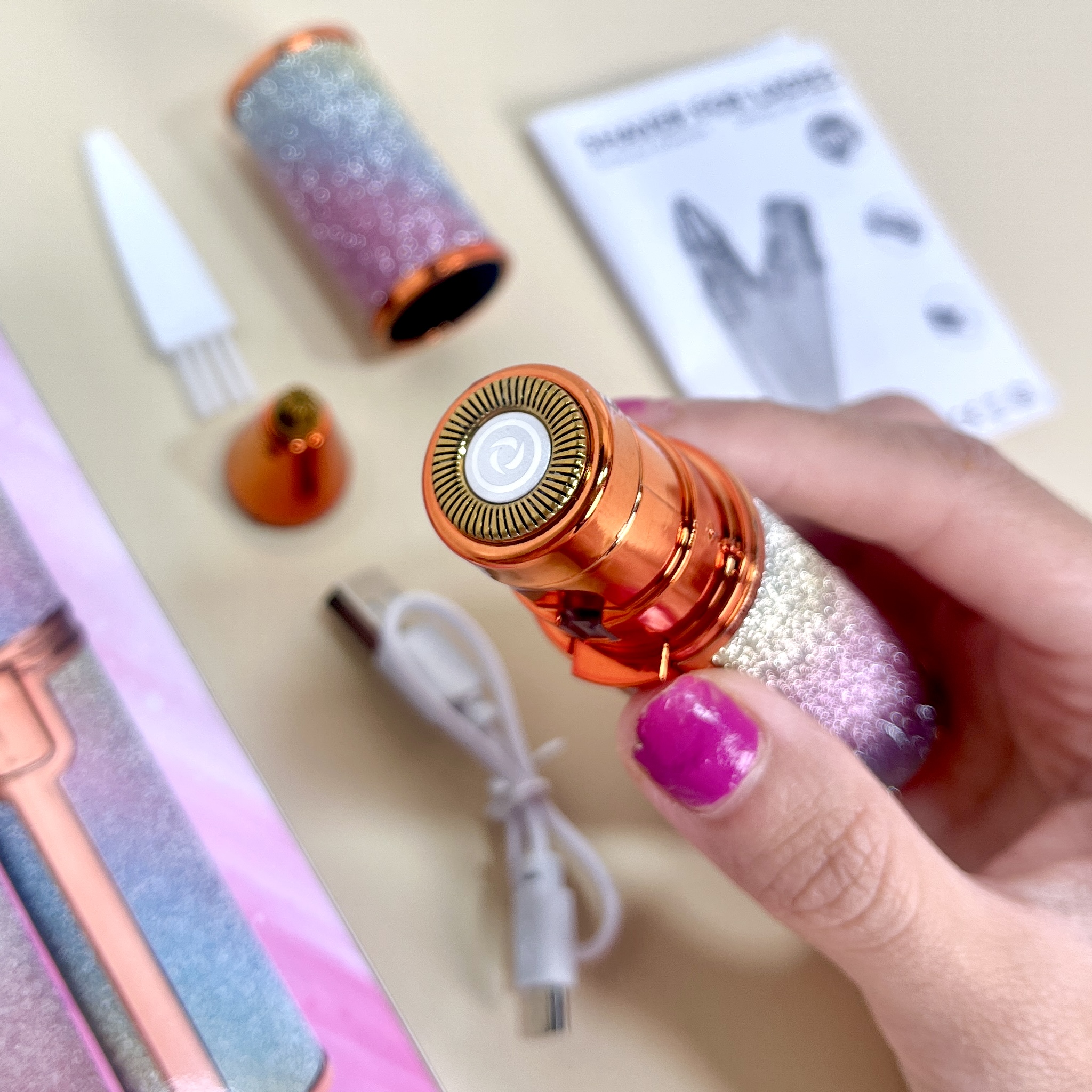 موزن و شیور دوکاره بانوان مدل CF001 – قابل شارژ USB با طراحی براق و فانتزی